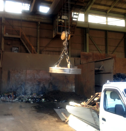 なんと、超巨大電磁石で鉄をくっつけて、それを鉄山に運んでいくというわけだったのです。