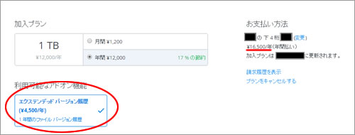 で、これが標準だとDropboxは30日分の履歴や削除したデータを保持するのですが、30日じゃ少ないな?